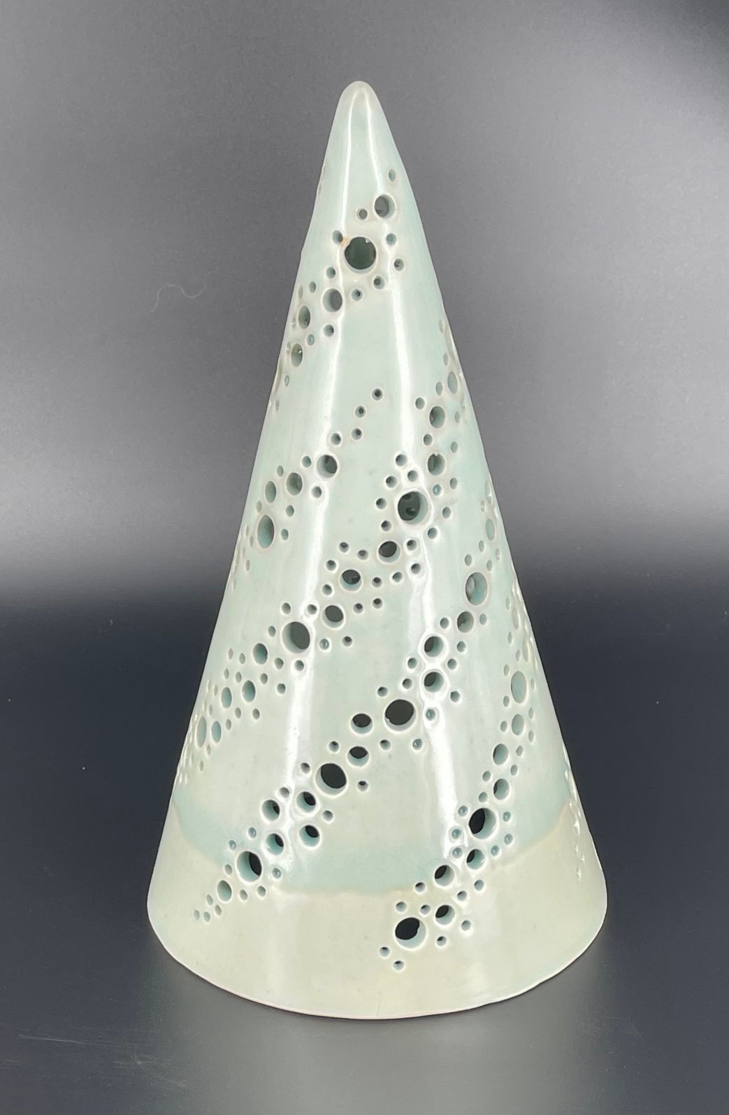 Experience the elegance of the Celadon Christmas Tree, featuring a festive design that will brighten up your holiday decor. With easy assembly and durable materials, this tree is the perfect choice for a hassle-free and long-lasting holiday centrepiece. Hand built porcelain Christmas Tree, high fired with a Celadon glaze finish, meant to accommodate a tealight (not included). Approximately 30 cm (12 in) high.