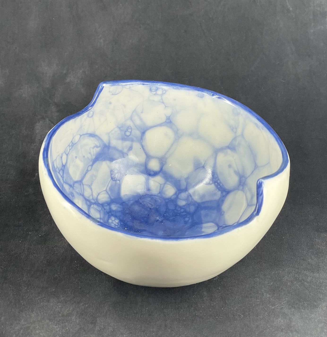 Experience the exquisite craftsmanship of our small porcelain bowl featuring a mesmerizing soap bubble underglaze. The unique glaze adds a touch of elegance to this versatile piece, perfect for any occasion.